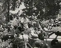 ![]() La multitud anima a Julius Nyerere, mientras conduce por la ciudad en el Madaraka Day | ||
