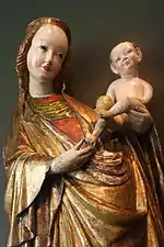 La estatua está realizada en madera de tilo y posee una altura de 119 centímetros. De madera maciza en la parte delantera y hueca en la parte posterior, la Madona fue concebida para ser vista de frente y de ambos lados. Con 18 centímetros de profundidad, la obra muestra a la Virgen María sosteniendo en su brazo izquierdo al Niño Jesús, quien figura desnudo y sujetando una manzana. Destaca el hecho de que ambos rostros se hallen prácticamente a la misma altura así como las similitudes entre ambos (frentes despejadas, mejillas redondas, cejas finas e idénticos ojos, labios y sonrisa).