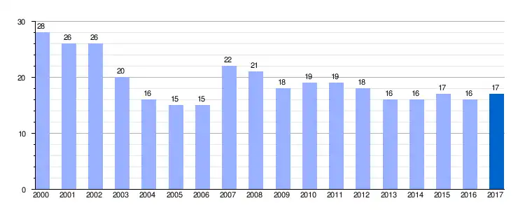 Gráfica de evolución demográfica de Madrid de las Caderechas entre 2000 y 2017 |