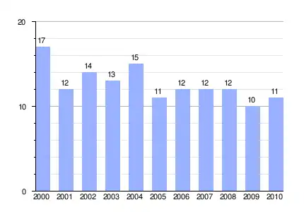 Población de derecho (2000-2010) según los censos de población del INE a 1 de enero de cada año.[4] |