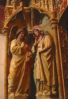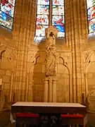 - Virgen con Niño del parteluz, mismo pórtico (denominada "Nuestra Señora la Blanca" o "Virgen Blanca").[1]