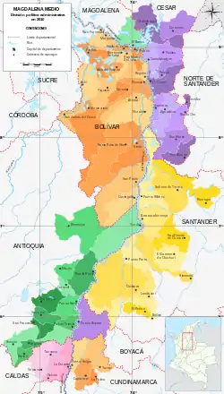 En el departamento de Bolívar se le conoce como Zona de Desarrollo Económico y Social (ZODES) del Magdalena Medio. Está cruzado por el principal corredor fluvial del Caribe colombiano, el río Magdalena.[6]
