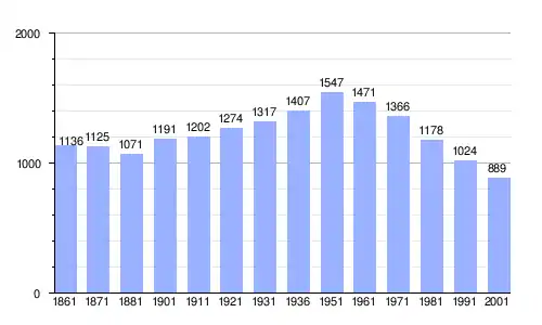 Gráfica de evolución demográfica de Magliano Vetere entre 1861 y 2001 |