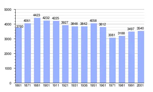 Gráfica de evolución demográfica de Magliano de' Marsi entre 1861 y 2001 |