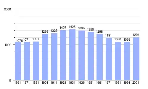 Gráfica de evolución demográfica de Magliano di Tenna entre 1861 y 2001 |