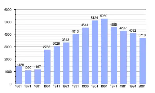 Gráfica de evolución demográfica de Magliano in Toscana entre 1861 y 2001 |