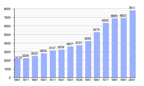 Gráfica de evolución demográfica de Magnago entre 1861 y 2001 |