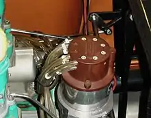 ![]() Sección transversal de una magneto de alta tensión, con distribuidor. |