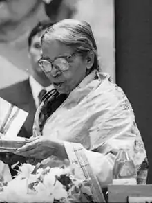 Mahasweta Devi (14 de enero de 1926 – 28 de julio de 2016)[1][2] fue una escritora y activista india bengalí. Su obra literaria incluye Hajar Churashir Maa, Rudali, Aranyer Adhikar, etc.[3] Trabajó para los derechos de los pueblos tribales (Lodha y Shabar) de los estados indios de Bengala Occidental, Bihar, Madhya Pradesh y Chhattisgarh.[4]