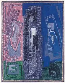 Esta obra fue creada por Jellett en su madurez. Refleja la aceptación de la abstracción pura. No representa un tema u objeto figurativo, pero tiene un lenguaje visual autónomo, con significado propio. Existe independientemente de la realidad y de cualquier carga histórica, cultural o geográfica. La pintura se compone de una combinación preponderante de líneas curvas que genera formas espaciales. Igualmente, el apartarse de convenciones cromáticas es evidente en esa paleta de colores como la terracota, rojo, gris, azul, amarillo, blanco y negro.