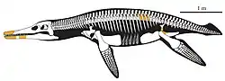 ![]() Reconstrucción de Makhaira; los restos recuperados se muestran en color naranja. | ||