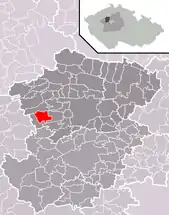 Se encuentra ubicada al noroeste de la región y de Praga, a poca distancia al norte del río Berounka —un afluente izquierdo del río Moldava—, y cerca de la frontera con la región de Ústí nad Labem.[1]