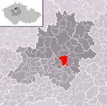 Se encuentra ubicada al norte de la región y de Praga, cerca de la confluencia de los ríos Elba y Moldava, y de la frontera con la región de Ústí nad Labem.[1]