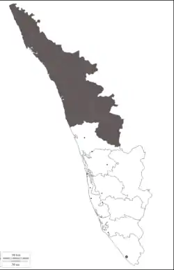 Incluía la mitad norte del estado de Kerala y alguna región costera de la actual Karnataka. El área es predominantemente hindú pero la mayoría de la población musulmana de Kerala conocida como mappila habita en esta zona; aunque también se llama mappila o nasraní mappila a los cristianos de Santo Tomás por lo cual deben evitarse confusiones en la denominación, de modo que también vive en esta área una considerable población cristiana llamada siro-malabar nasrani desde antiguo.[1]