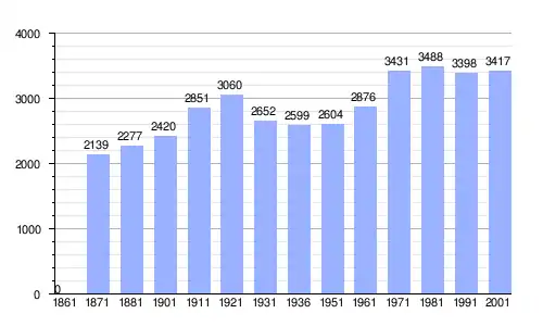 Gráfica de evolución demográfica de Malcesine entre 1861 y 2001 |
