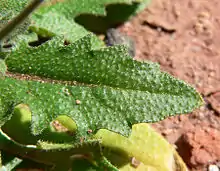 Planta de hojas oblongas, dentadas o lobuladas, sépalos no jorobados, silicua más o menos cuadrangular con estilo muy corto. Bastante común en la altas mesetas, más rara en el Sahara septentrional y solamente en el límite norte.[1]