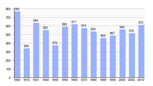 Gráfica de evolución demográfica de Malila entre 1900 y 2010 |