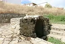 - Fuente antigua de piedra con forma semiesférica en su zona central y con un pequeño estanque interior de base cuadrada y de un metro de profundidad.