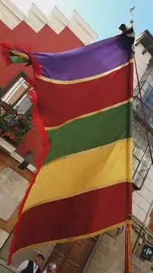 - Pendón con vara de 5,20 metros de altura y confeccionado con tejido de damasco de seda de rayón en cuatro colores: morado, granate, verde y oro. Fue restaurado en 2017 por la Junta Vecinal.