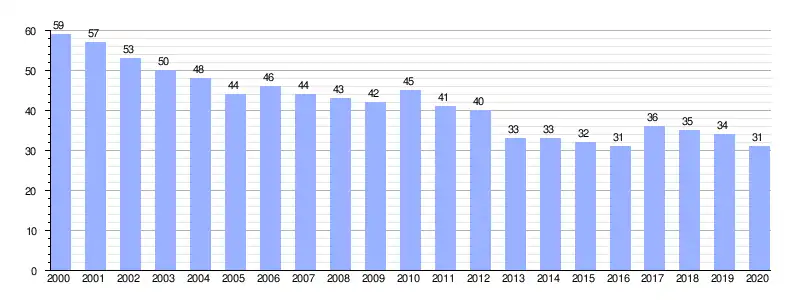 Gráfica de evolución demográfica de Malillos de los Oteros[1] entre 2000 y 2020 |