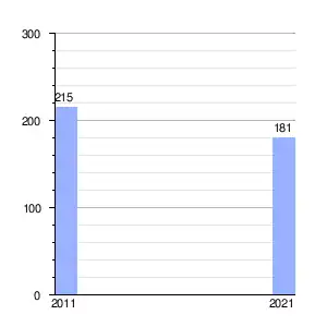 Gráfica de evolución demográfica de Malpartida e Vale de Coelha entre 2011 y 2021 |