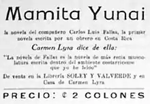 Mamita Yunai es la primera novela del escritor costarricense Carlos Luis Fallas, Calufa. Fallas terminó de escribirla en noviembre de 1940 y la publicó al año siguiente en la editorial Soley y Valverde, en la ciudad de San José.[1] Durante ese año también fue difundida en el semanario Trabajo, órgano oficial del Partido Comunista Costarricense, al que Fallas pertenecía. El texto no volvió a ser editado en Costa Rica hasta mucho tiempo después. Mamita Yunai pasó inadvertida durante años, hasta que, según Fallas, "el soplo poderoso del gran poeta Pablo Neruda le echó a correr por el mundo".[2] Chile fue el primer país latinoamericano que reeditó la novela, que apareció en la editorial Nascimento, en 1949.