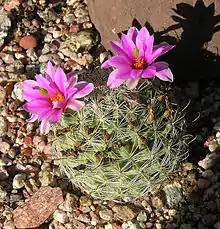 Es una planta perenne carnosa y globosa que crece solitaria. Crece solitaria, en raras ocasiones, forma grupos pequeños. El cuerpo es esférico a cilíndrico, de color gris pálido-verdoso con brotes que alcanzan una altura de 3,5 cm y un diámetro de 3 cm. Tiene alrededor de 20 espinas aciculares rectas, alcanzando una longitud de 15 milímetros. Las flores son de color rosa o lavanda, con una longitud y un diámetro de 4 centímetros. Las frutas son de hasta 30 milímetros de longitud y contiene semillas negras.