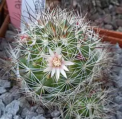 Mammillaria: nombre genérico que fue descrita por vez primera por Carolus Linnaeus como Cactus mammillaris en 1753, nombre derivado del latín mammilla = tubérculo, en alusión a los tubérculos que son una de las características del género.