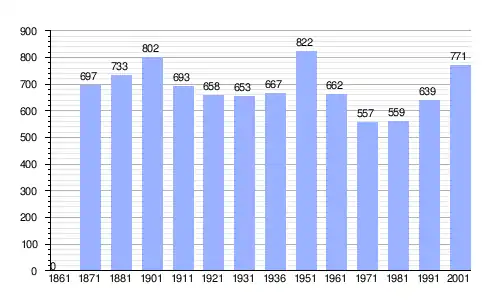 Gráfica de evolución demográfica de Mandela entre 1861 y 2001 |