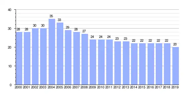 Gráfica de evolución demográfica de Mangüeiro (parroquia) entre 2000 y 2019 |