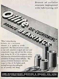 ![]() Anuncio de los cojinetes fabricados por Manganese Bronze Brass Co. Ltd (1948) | ||