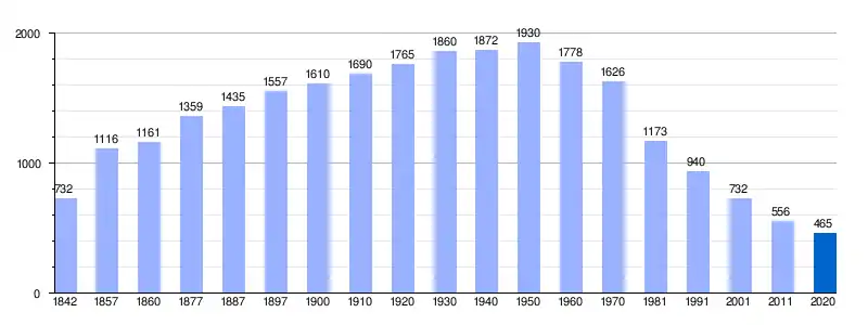 Población de derecho (1842-1991, excepto 1857 y 1860 que es población de hecho) o población residente (2001-2011) según los Censos de Población desde 1842. |