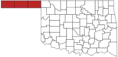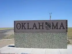 ![]() Señal de bienvenida al estado, situada en el mango de Oklahoma, en el borde con Nuevo México