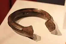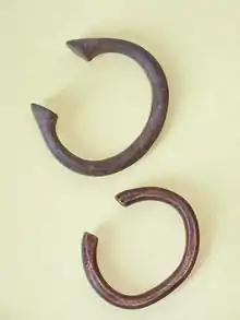 La Manilla es una forma de dinero, usualmente hecha de bronce o cobre, que se usaba en África occidental.[1] Se produjeron en grandes cantidades y en una amplia gama de diseños, tamaños y pesos. Se originó antes del período colonial, tal vez como resultado del comercio con el Imperio portugués, la manilla continuó sirviendo como dinero y objeto decorativo hasta finales de la década de 1940 y todavía se utilizan como ornamento en algunos contextos. En la conciencia popular, están particularmente asociados con el Comercio atlántico de esclavos.[2]