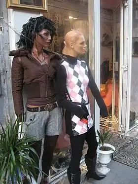 En muchas ocasiones es una figura articulada de tamaño natural usada específicamente para exhibir ropa en el escaparate o en el interior de un establecimiento comercial. Estos modelos sirven especialmente para demostrar el arreglo de la ropa.