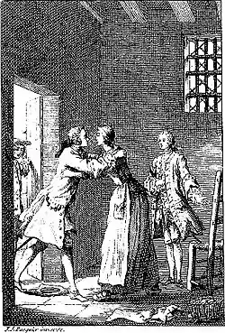 Desesperado, tras intentar sin conseguirlo que Manon sea liberada, Des Grieux consigue, pagando una fuerte cantidad, permiso para seguir a Manon. Es el momento en el que el hombre de calidad se encuentra con él por primera vez en Pacy: ya no le queda dinero y se ve separado de su amante.