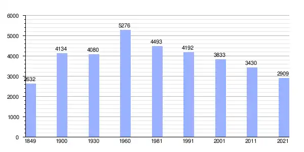 Gráfica de evolución demográfica de Manteigas entre 1849 y 2021 |
