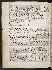 Aunque en su mayor parte las piezas son profanas, el códice cuenta también con unas pocas religiosas, como el Credo con el que comienza la colección o el grupo de Kyrie - Gloria - Credo que se haya en la penúltima página del manuscrito.