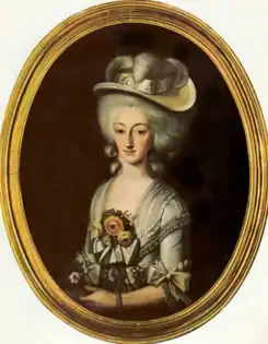 ![]() Retrato oval cerca de 1777 por un pintor no identificado (colección del Palacio Real de Turín). | ||