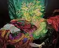 «Podríamos decir que un humanismo muy vivo tiembla sobre todo en ella –estoy, pensando por ejemplo, en sus retratos, en sus “Maternidades”–, pero a la vez hay en esta pintura, como he dicho, un gran afán de libertad en la que la renovación del color y la osadía de los temas tratados tienen mucho que ver. Bodegones, misteriosos seres y paisajes que brotan de profundos y luminosos paisajes, la presencia de la mujer como revelación de lo telúrico, pero también de lo enigmático, sus paráfrasis velazqueñas que la pintora sumerge en la naturaleza, la carnalidad floral y la de los cuerpos en interiores serenos, son sólo algunos de los temas que esta pintora nos revela con llamativa y personalísima brillantez, con la misma osadía que esa mujer a caballo azules de uno de sus cuadros penetra en un mar de azules».[5]