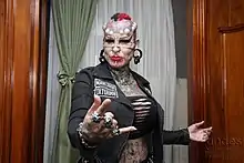 Conocida por sus modificaciones corporales, también es la mujer más tatuada del mundo.[4] Tiene el 96 % de su cuerpo tatuado, según el Libro Guinness de los récords.[5] Es uno de los personajes más conocidos en el arte de los tatuajes.[6]