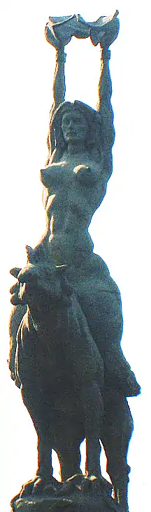 El escultor Alejandro Colina la inmortalizó para el mundo como una mujer desnuda de musculatura atlética, sobre una danta (tapir macho, adorado por tribus indígenas), y con las manos extendidas en las que sostiene un hueso de pelvis femenina (símbolo de la fertilidad) en sus pies la danta aplasta a unas serpientes, símbolos de envidia y egoísmo. Esta escultura se realizó durante el gobierno de Marcos Pérez Jiménez. Está en la autopista Francisco Fajardo, justo al lado de la Universidad Central de Venezuela (UCV).