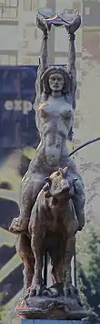 La estatua es de la diosa venezolana María Lionza,[2] figura de culto y diosa de la naturaleza de Yaracuy.[3] El artista Alejandro Colina realizó muchas esculturas basadas en el folclore indígena.[2] En la década de 1920[1] pasó ocho años viviendo en algunas de las comunidades indígenas del occidente de Venezuela, y luego optó por representar la iconografía relacionada en sus esculturas monumentales.[2] Según el folclorista venezolano Gilberto Antolínez, en la década de 1940 Colina también participó en un movimiento para mitificar a María Lionza. Antolínez recordó: “En 1939 creamos un movimiento social destinado a exaltar los valores ancestrales de Venezuela. Yo mismo, el escultor Alejandro Colina y el arquitecto Hermes Romero nos juntamos en un grupo [... ] Organizamos una serie de conferencias y eventos divulgativos y [...] aprovechamos tales ocasiones para 'mitificar' a María Lionza, tanto en su leyenda como en la escultura que hoy se yergue sobre la vía principal de Caracas".[4]
