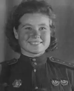 El 22 de septiembre de 1943, se convirtió en el primer miembro del regimiento en realizar un total de 500 salidas de combate; A principios de ese mes, fue nominada para el título de Héroe de la Unión Soviética por haber completado 441 salidas, pero la solicitud fue rechazada y finalmente recibió la Orden de Alejandro Nevski en su lugar, convirtiéndola ella y su camarada Yevdokia Nikúlina, en las primeras mujeres que recibieron tan alta distinción. Menos de un año después, en agosto de 1944, fue nominada nuevamente para el título por realizar un total de 805 salidas, en esta ocasión el alto mando la concedió la más alta condecoración de la Unión Soviética el título honorífico de Héroe de la Unión Soviética, el 26 de octubre de 1944. Al final de la guerra, había realizado un total de 935 salidas de combate en el viejo biplano Polikarpov Po-2, lanzando un total de 118 toneladas de bombas sobre objetivos enemigos.[6]