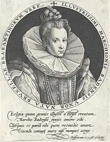 El 13 de marzo de 1591, se casó en Bruselas con Eduardo Fortunato Margrave de Baden-Baden. Como no pertenecía a la alta nobleza, no fue considerada como una esposa digna para un margrave y sus hijos nunca fueron aceptados como familiares por su primo Ernesto Federico Margrave de Baden-Durlach. Sin embargo, su hijo Guillermo heredaría Baden-Baden.