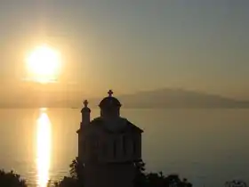 ![]() Vista del mar de Tracia, con el monte Pangeo al fondo, desde la isla de Tasos | ||