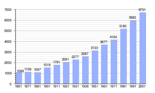 Gráfica de evolución demográfica de Maracalagonis entre 1861 y 2001 |