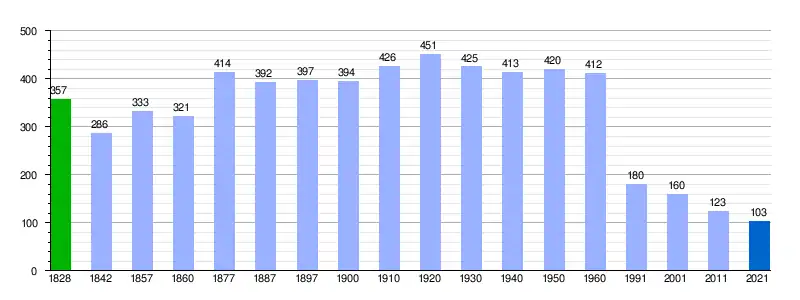 Gráfica de evolución demográfica de Marazoleja[8] entre 1828 y 2021 |
