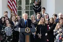 En 2018, el presidente Donald Trump se dirigió a la marcha número 45 vía satélite desde el jardín de rosas de la Casa Blanca, convirtiéndose en el primer presidente de Estados Unidos en dirigirse a la manifestación utilizando esta tecnología. [38] A la marcha asistieron el presidente de la Cámara de Representantes de Estados Unidos, Paul Ryan, el representante demócrata de Illinois Dan Lipinski, el ex centro de la NFL Matt Birk [39] y la madre del ex mariscal de campo de la NFL Tim Tebow, Pam. [40]