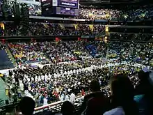 En 2009, el nuncio apostólico en los Estados Unidos, el arzobispo Pietro Sambri, leyó el mensaje del Papa Benedicto XVI, que decía a los asistentes que estaba "profundamente agradecido" por el "destacado testimonio anual del evangelio de la vida" de los jóvenes. [7] En 2008, el mensaje del Papa agradeció a los asistentes por "promover el respeto por la dignidad y los derechos inalienables de todo ser humano". [45] En 2011, se llevó a cabo un evento paralelo al evento Verizon Center en el DC Armory ; Un total de más de 27.000 jóvenes asistieron a los eventos. [48]